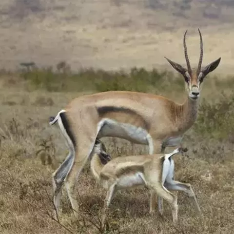阿拉伯沙瞪羚:是偶蹄目、牛科、瞪羚属的食草动物。头尾长97厘米,身高约55-60厘米。…