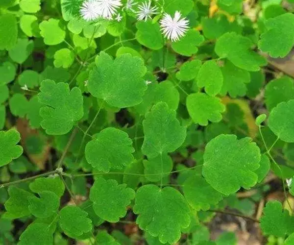 多年生草本,茎高20~66cm分枝。2~3回三出复叶,小叶宽倒卵形或近圆形,宽1~2cm,不明显3浅裂,具圆齿。单歧聚伞花序生茎和分枝顶端,花直径6~7mm,萼片4枚,白色,倒卵形,无花瓣,雄蕊多枚,花丝上部倒披针形,花柱宿存。瘦果圆柱状纺锤形,有6~8条纵肋条 。