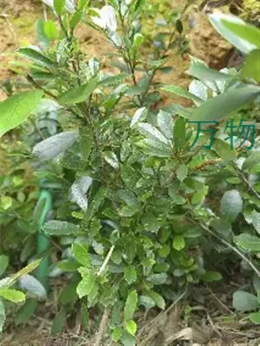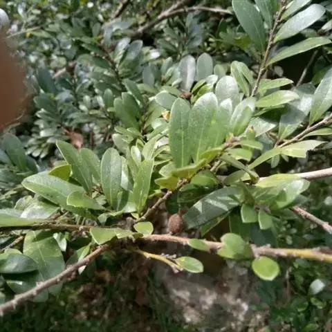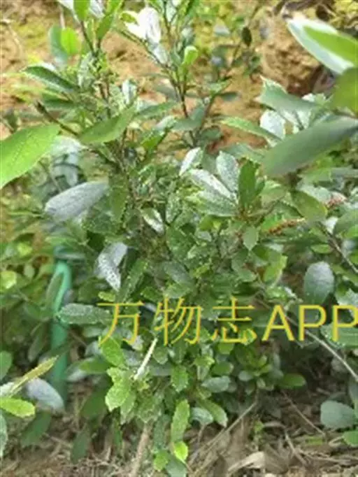 常绿灌木,高约1米;嫩枝粗壮,节间长2-4毫米,被褐色柔毛,老枝暗褐色,秃净无毛;芽体裸露、有柔毛。叶革质,矩圆形,长2-4厘米,宽约1厘米,先端略尖,基部阔楔形,上面绿色,稍发亮,下面秃净无毛;侧脉5对,在上面不明显,在下面隐约可见,网脉在上下两面均不明显;边缘在靠近先端处有2-3个小锯齿;叶柄长2毫米,略有柔毛;托叶披针形,早落。
