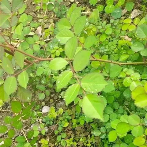 金樱子常绿攀援灌木,高可达5米;小枝粗壮,散生扁弯皮刺,无毛,幼时被腺毛,老时逐渐脱落减少。小叶革质,通常3,稀5,连叶柄长5-10厘米;小叶片椭圆状卵形、倒卵形或披针状卵形,长2-6厘米,宽1.2-3.5厘米,先端急尖或圆钝,稀尾状渐尖,边缘有锐锯齿,上面亮绿色,无毛,下面黄绿色,幼时沿中肋有腺毛,老时逐渐脱落无毛;小叶柄和叶轴有皮刺和腺毛;托叶离生或基部与叶柄合生,披针形,边缘有细齿,齿尖有腺体,早落。
