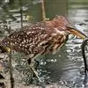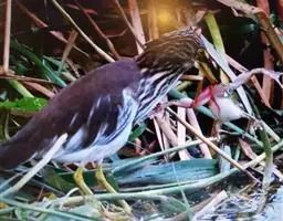 栗苇鳽的食物主要为小鱼、黄鳝、蛙、小螃蟹、水蜘蛛以及蝼蛄、龙虱幼虫和叶甲等昆虫。有时也吃少量植物性物质。