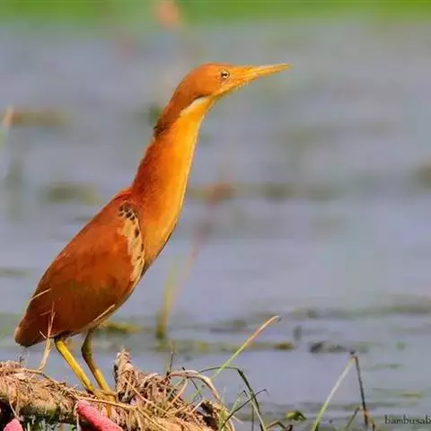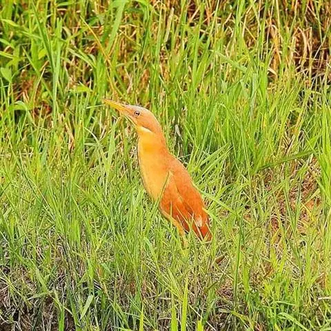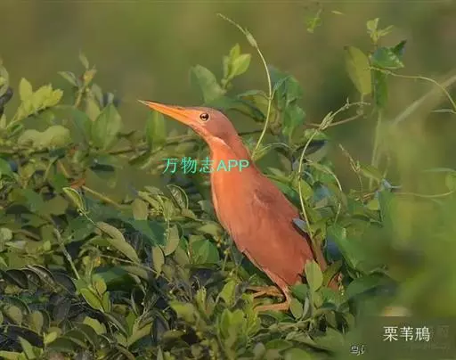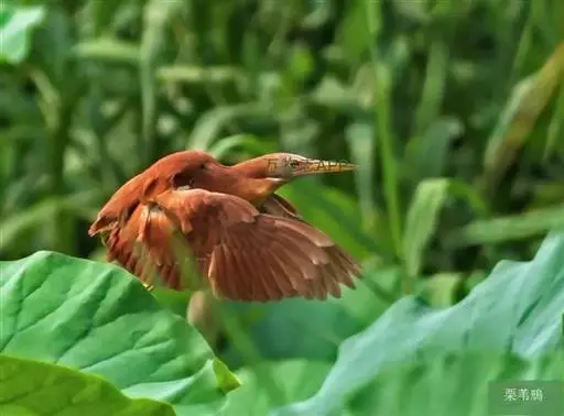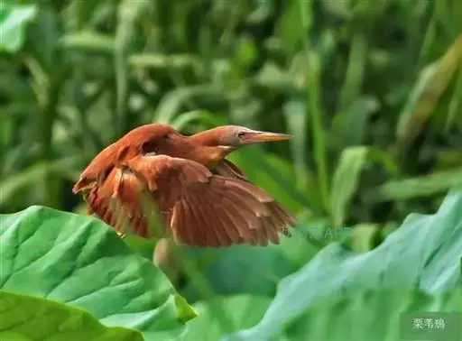 栗苇鳽(学名:Ixobrychus cinnamomeus)是一种中型涉禽。体长30-38厘米。外形和紫背苇鳽相似。雄鸟上体从头顶至尾包括两翅飞羽和覆羽全为同一的栗红色,下体淡红褐色,喉至胸有一褐色纵线,胸侧缀有黑白两色斑点,野外特征极为明显,容易辨认。雌鸟头顶暗栗红色,背面暗红褐色,杂有白色斑点,腹面土黄色,从颈至胸有数条黑褐色纵纹。栖息于芦苇沼泽、水塘、溪流和水稻田中。夜行性,多在晨昏和夜间活动,白天也常活动和觅食,但在隐蔽阴暗的地方,食性主要为小鱼、蛙、泥鳅和水生昆虫。分布于东亚、东南亚和南亚。