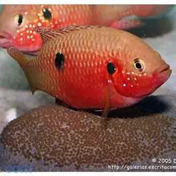 红宝石鱼是鲈行目慈鲷科伴丽鱼属 鱼类,又名红花鲈、宝石鱼。个体较大,身长12—15厘米。背鳍宽大,…