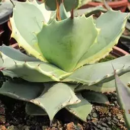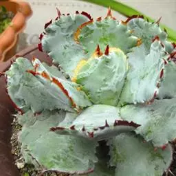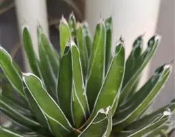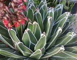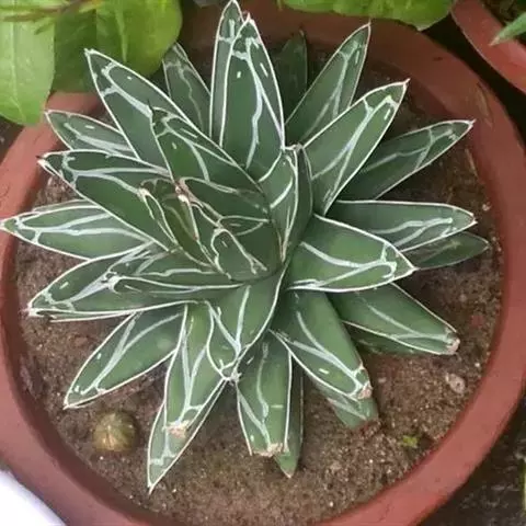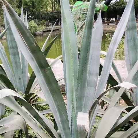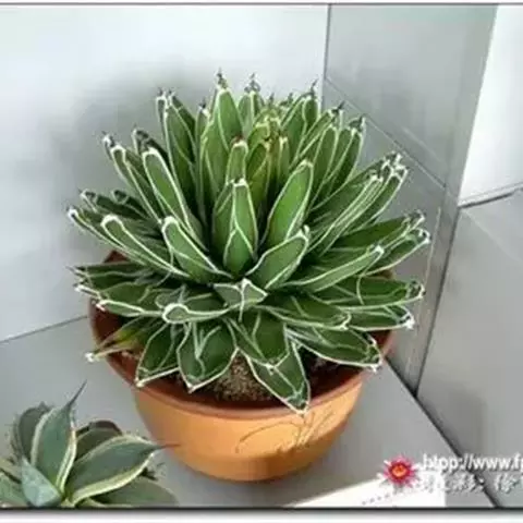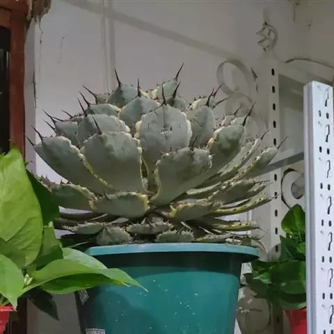 皇后龙舌兰是天门冬科、龙舌兰属多年生草本多浆植物。无主茎,叶丛生,莲座状,株幅40厘米。叶较多,…
