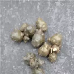 播前,把已催好芽的姜块掰成75-100克的小种块,每个种块上保留1个肥胖的幼芽。结合掰姜种,应再进行一次精选种芽,剔出芽基部发黑、或姜断面变褐的姜块。