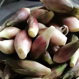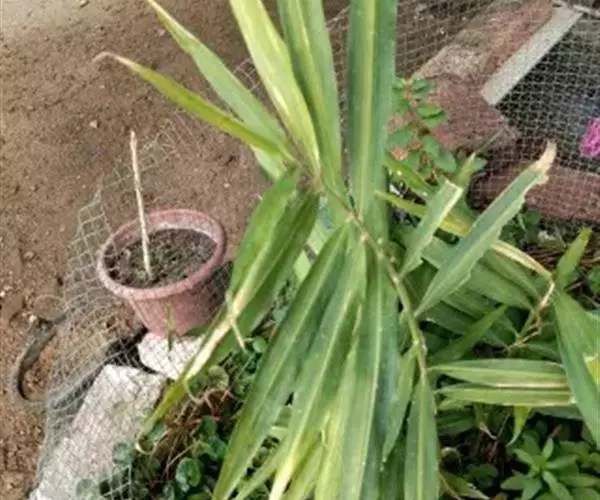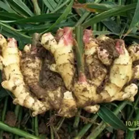 肉质根茎簇生,分生力强,分枝较密成双排列。肉质致密,纤维多,味较辣、品质佳,肉与表皮淡黄色,芽紫红,单株0.75-2公斤,耐旱,抗病。
