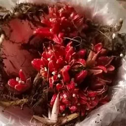 肉质根簇生,分枝疏、成单排,根茎肥大,嫩芽粉红色,耐旱,忌水。肉黄白色,表皮淡黄色,味辣,纤维少,品质佳,单株1-3公斤。