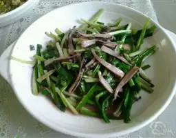 木耳肉片是一道色香味俱全的汉族名肴,属于粤菜系。将肉切薄片,油菜台切成同样大小薄片,葱、姜切成丝。…