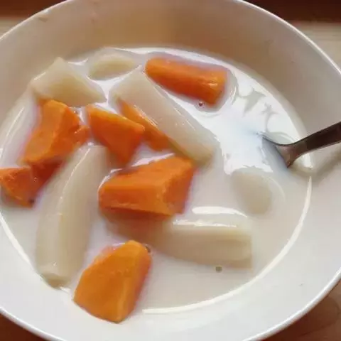 4、食用方法很多,可代替米,面用来制作主食;将鲜山芋煮熟捣烂,与米粉、面粉等掺和后,可制作各类糕、团、包、饺、饼等;干制成粉又可代替面粉制作蛋糕、布丁等点心,还可加工成著粉丝;