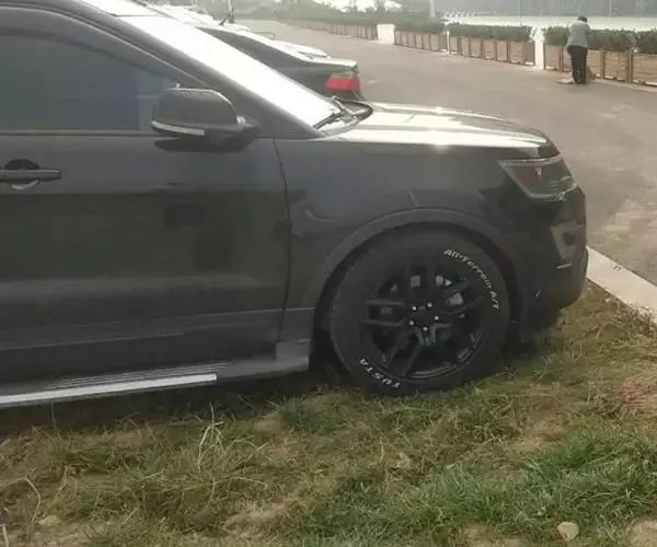 福特探险者(Explorer)前脸采用了与锐界相似的宽大进气格栅横条,不过没有大面积使用镀铬装饰,而是网状结构配合细长的镀铬装饰条。探险者的刀型组合大灯和旧款的福特锐界有些近似,保险杠上有大面积的塑料包围,保险杠靠近前轮的两侧还有辅助雷达探头。