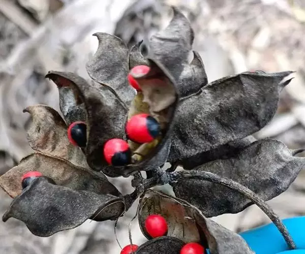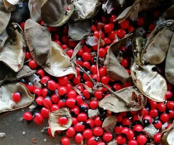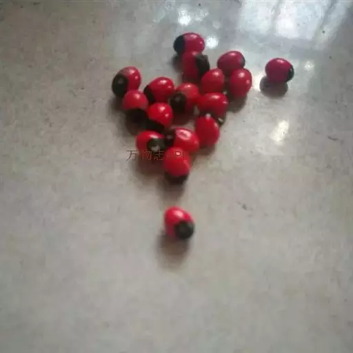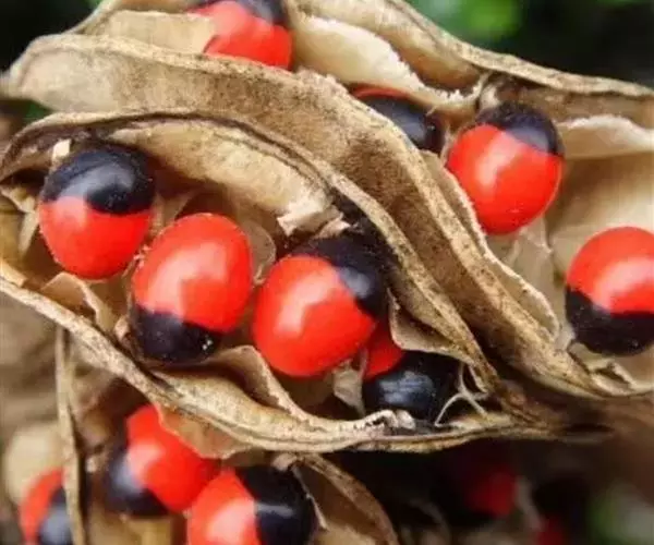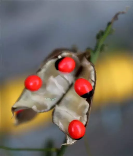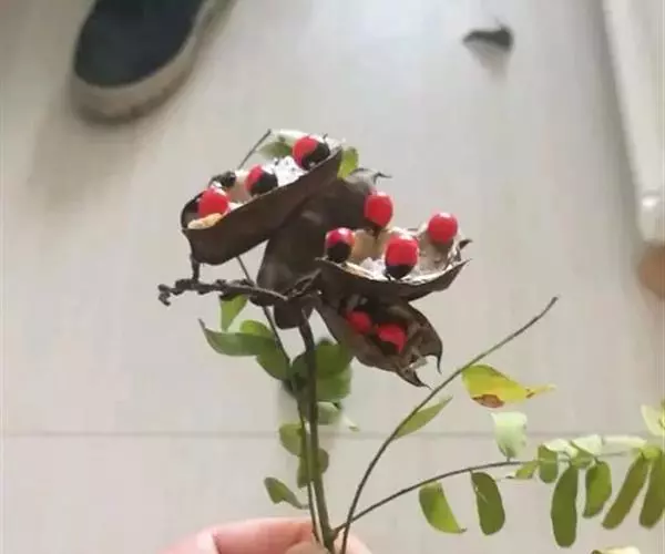 相思子的种子质地坚硬,色泽华美,红艳持久,可做装饰品,但有剧毒。