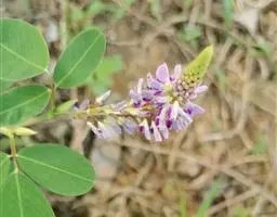总状花序腋生,长3-8厘米;花序轴粗短;花小,密集成头状;花萼钟状,萼齿4浅裂,被白色糙毛;花冠紫色,旗瓣柄三角形,翼瓣与龙骨瓣较窄狭;雄蕊9;子房被毛。