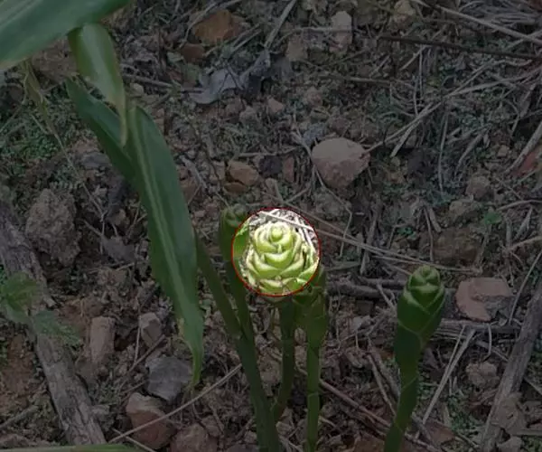紫苞芭蕉形如一枝亭亭玉立、含苞待放的荷花,但却开在高高的芭蕉树上,这就是紫苞芭蕉。