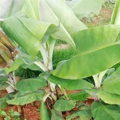红蕉,假茎高1-2米。叶片长圆形,长1.8-2.2米,宽68-80厘米,叶面黄绿色,叶背淡黄绿色,…