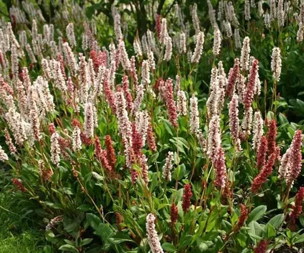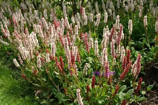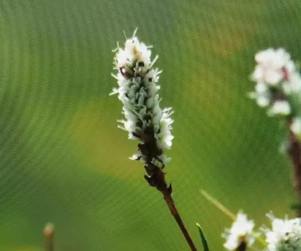 总状花序呈穗状,顶生,紧密,下部生珠芽;苞片卵形,膜质,每苞内具1-2花;花梗细弱;花被5深裂,白色或淡红色。花被片椭圆形,长2-3毫米;雄蕊8,花丝不等长;花柱3,下部合生,柱头头状。瘦果卵形,具3棱,深褐色,有光泽,长约2毫米,包于宿存花被内。花期5-7月,果期7-9月。