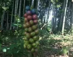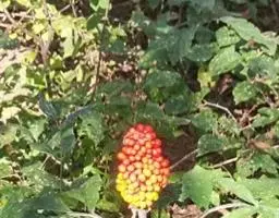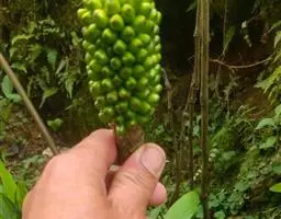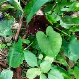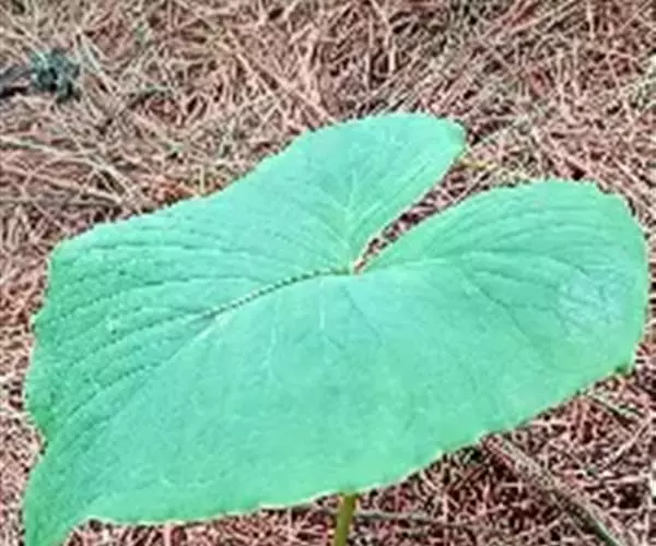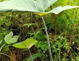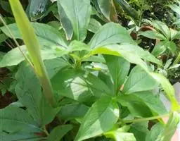 独角莲-原植物(图5) 独角莲采用块茎和种子繁殖,而以块茎无性繁殖为主,在秋季收获时,利用球茎四周生出来的小球茎作种栽。小球茎分带根与不带根的两种,带根的较大球茎栽植后可当年收获,不带根的小球茎栽填次年收获。秋季选留收获的小种茎,用干细泥沙分层堆积,贮藏越冬。