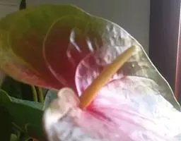 花序柄长15厘米。佛焰苞紫色,管部圆筒形或长圆状卵形,长约6厘米,粗3厘米;檐部卵形,展开,长达15厘米,先端渐尖常弯曲。肉穗花序几无梗,长达14厘米,雌花序圆柱形,长约3厘米,粗1.5厘米;中性花序长3厘米,粗约5毫米;雄花序长2厘米,粗8毫米;附属器紫色,长2-6厘米,粗5毫米,圆柱形,直立,基部无柄,先端钝。雄花无柄,药室卵圆形,顶孔开裂。雌花:子房圆柱形,顶部截平,胚珠2;柱头无柄,圆形。花期6-8月,果期7-9月。
