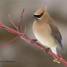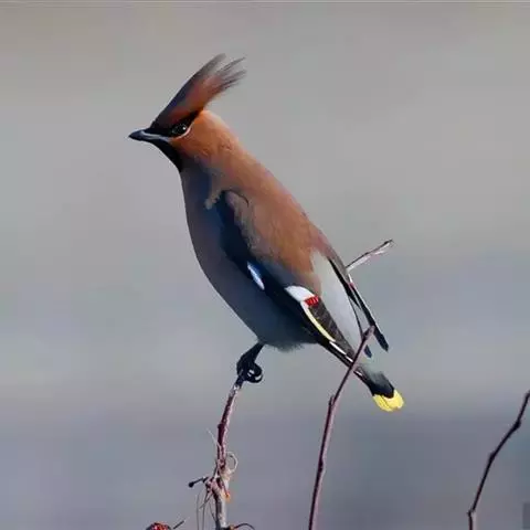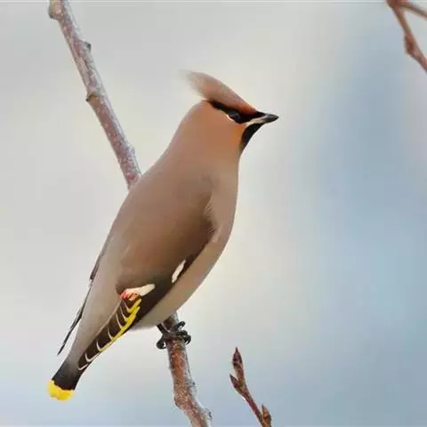 太平鸟属雀形目,太平鸟科的鸟类。太平鸟通体灰褐色,具羽冠;颏、喉黑色,尾羽先端黄色;虹膜暗红色;嘴…