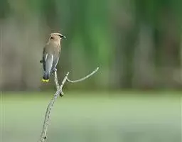雪松太平鸟体形中等大小,体长约在19厘米左右。该物种雄雌同形同色,太平鸟成鸟额部及面部前端为栗色,…