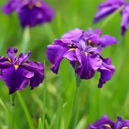 花菖蒲:是玉蝉花的变种。多年生宿根挺水型水生花卉。根状茎短而粗,须根多并有纤维状枯叶梢,叶基生,线…