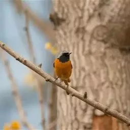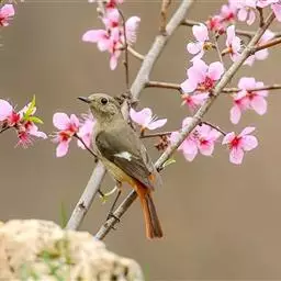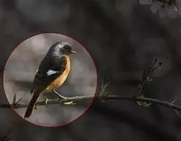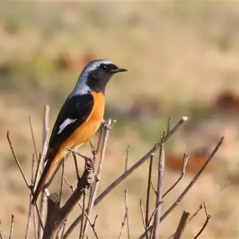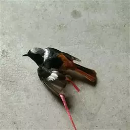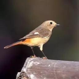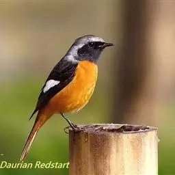 赭红尾鸲(学名:Phoenicurus ochruros):小型鸟类,体长13-16cm。雄鸟前额、头侧、颈侧、颏至胸概黑色,头顶和背灰色或黑色,腰、尾上覆羽、尾下覆羽、外侧尾羽和腹栗棕色,中央尾羽褐色,两翅黑褐色。雌鸟上体和两翅淡褐色,尾上覆羽和外侧尾羽淡棕色,中央尾羽褐色,下体浅棕褐色。