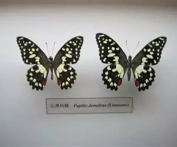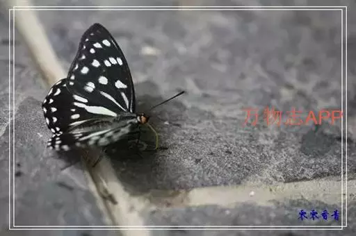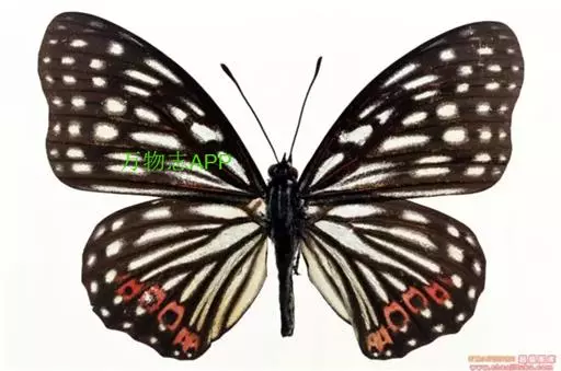 翅面黑色,有许多不规则尖形白斑,前翅中室内白斑分开,有二中列、一亚缘列白斑,后缘一室有二平行白条纹,后翅基半部脉间白色,端部有亚缘及缘小白斑列。翅反面似正面,但前翅顶角、后半部及后翅端区呈深褐色。