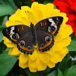 • 孔雀蛱蝶展翅宽50~60mm。翅膀表面红色,上、下翅有一大型彩色眼纹;翅膀腹面淡褐色,拟似烟熏枯叶…