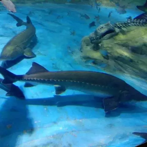 中华鲟:是硬骨鱼纲、鲟科的鱼类。常见个体体长0.4-1.3米,体重50-300千克;最大个体体长5米,…