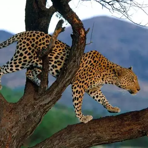 花豹是大型肉食性动物,体形似虎,但明显较小;头小尾长,四肢短健;毛被黄色,满布黑色环斑;头部的斑点…