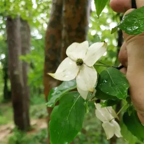 峨眉四照花(Dendrobenthamiacapitata(Wall.) Hutch. var.emeiensis(Fang et Hsieh) Fang et W. K. Hu):该变种与原变种的区别在于叶为革质,长椭圆形或长圆椭圆形,先端渐尖、尾状,下面有白色较粗的贴生短柔毛,脉腋有簇生毛;头状花序为60-70朵花组成,直径8-10毫米;花萼裂片近于圆形或截形。分布于四川省峨眉山。生长于海拔1000-1400米的森林中。该变种的成熟果实味甜可食。