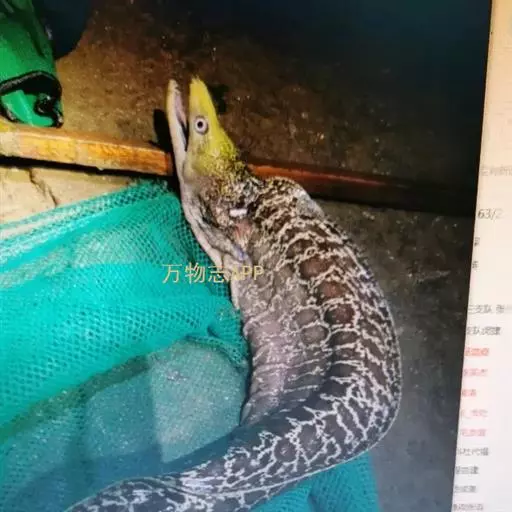 海鳗体呈长圆筒形,尾部侧扁。尾长大于头和躯干长度之和。头尖 海鳗 长。 眼椭圆形。口大, 舌附于口底。上颌牙强大锐利,3行; 犁骨中间具10~15个侧扁大牙。体无鳞,具侧线孔140~153个。背鳍和臀鳍与尾鳍相连。体黄褐色, 大型个体沿背鳍基部两侧各具1暗褐色条纹。脊椎骨142~154个。 摄食强度以7~9月较高。海鳗有明显洄游现象。
