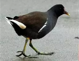乌水鸡 乌水鸡是一种体型较大的水鸡,身体乌黑色,与我国的黑水鸡比较相似,但体型较大,大小与白骨顶相当,两胁没有白色细纹,腿红色。与白骨顶也比较相似,并可能混群在一起,但可以从嘴、骨顶和腿的颜色将二者区分开。叫声急促重复的“krurk”声。乌水鸡和黑水鸡几乎是镶嵌分布,黑水鸡几乎遍布世界各地,唯独不产于大洋洲,而乌水鸡则是大洋洲的土产。乌水鸡在澳大利亚东南部和西南部比较常见,在澳大利亚北部则比较罕见。乌水鸡出没于各种不同的湿地环境中,最喜欢边缘有茂密植物的开阔淡水水域,在城市公园的水塘中也能见到。繁殖通常在南部繁殖于9~11月,北部繁殖于1~4月。在芦苇或近水的植物中筑不很隐蔽的巢,产卵4~10枚。