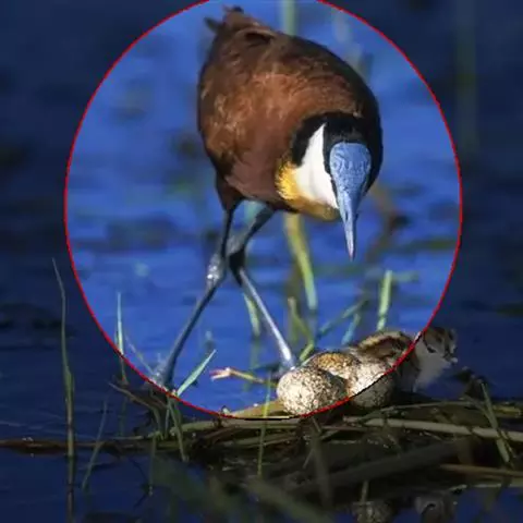 苦恶鸟(图4) 白胸苦恶鸟又名白胸秧鸡或白面鸡,善奔走,在芦苇或水草丛中潜行,亦稍能游泳,偶作短距离飞翔,以昆虫、小型水生动物以及植物种子为食。在繁殖期间雄鸟晨昏激烈鸣叫,音似“kue,kue,kue”,故称“姑恶鸟”或“苦恶鸟”。在荆棘或密草丛中,偶亦能在树上,以细枝、水草和竹叶等编成简陋的盘状巢。每窝产卵6~9枚。卵土黄色,上布紫褐色和红棕色的稀疏纵纹和斑点。在中国南方每年可产2~3窝。雏鸟为早成性,孵出后即能离巢,但仍与亲鸟一起活动。白胸苦恶鸟的普通亚种夏季在中国长江流域以南的东部地区繁殖,偶见于河北省和山东省。在福建、广东、台湾、云南各省为留鸟。肉味鲜美,为猎禽之一。