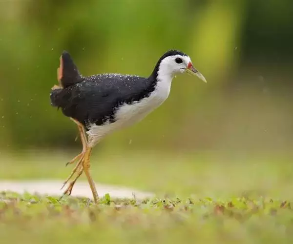 苦恶鸟(图3) 苦恶鸟是鹤形目秧鸡科的1属。体长270~300毫米,体重200~300克。上体近灰黑色,面部和下体纯白,尾下覆羽呈栗色;嘴基稍隆起,但不形成额甲,嘴峰较趾□为短;跗较中趾(连爪)为短;翅短圆,不善长距离飞行。共有5种,主要分布于东半球的热带和亚热带。中国有 2种。本属以白胸苦恶鸟为典型代表。