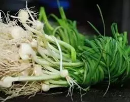 蒜苗,又叫青蒜(不见光时为蒜黄)。品质好的蒜苗应该鲜嫩,株高在35厘米左右,叶色鲜绿,不黄不烂,毛根白色不枯萎,而且辣味较浓。