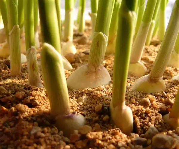 蒜苗 种植伏秋蒜苗力求选用优良早熟多瓣蒜种。栽种前要将蒜苗盘分开,按大、中、小瓣分为三级,把分开的蒜种放在井水中(井水水温较低)浸泡12小时,打破蒜种的休眠,促进快出芽。各种大蒜品种都可用来培育青蒜苗,各地均有自己适宜用于青蒜苗栽培的品种。过去多用小瓣品种,如用狗牙蒜来栽培育蒜苗。这种做法节约蒜种、成本低,但是蒜苗纤细、产量低、品质不好。各地多换用大瓣品种来栽培青蒜苗。大瓣种进行青蒜苗栽培时,用种量大,成本稍高,但产量很高,品质好,生长旺盛。国内有培育蒜苗的专用品种,如广西的全州肉蒜,该种蒜瓣味淡但肥大,长出的蒜苗粗壮高产。在早秋栽培青蒜苗时,应选用休眠期短的品种,以便播后及早发芽出苗。在山东地区此时以紫皮蒜为宜。