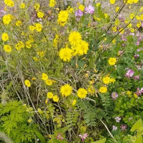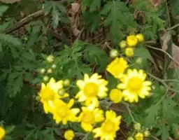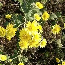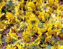 野菊花(学名:Dendranthema indicum)为菊科多年生草本植物,野菊花头状花序的外形与菊花相似,呈类球形,直径0.3~1cm,棕黄色。总苞由4~5层苞片组成。舌状花一轮,黄色,皱缩卷曲;管状花多数,深黄色。体轻。性苦、味辛,微寒。野生于山坡草地、田边、路旁等野生地带。以色黄无梗、完整、苦辛、花未全开者为佳。