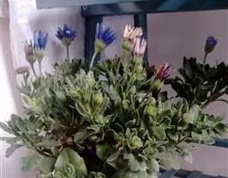 蓝目菊别名非洲雏菊、大花蓝目菊。原产南非,不耐寒.忌炎热,适宜温度18℃~26℃,喜向阳环境。…