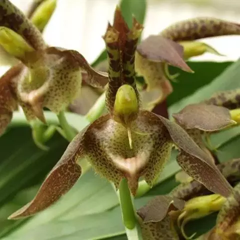 二列叶虾脊兰:植株粗壮,高达120厘米,除根外全体无毛,具粗短的圆柱状假鳞茎和长而粗壮的根状茎。假…
