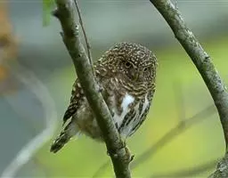 鸺鶹,全长145-170毫米,羽毛棕褐色,有横斑,尾巴黑褐色,腿部白色,爪子比较锋利。外形像鸱鸺,…