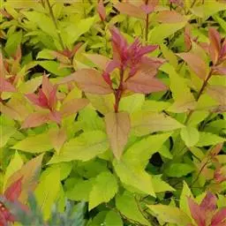 金焰绣线菊,栽培种,为落叶灌木,芽小,芽鳞2-8。单叶互生,具锯齿、缺刻或分裂,稀全缘,羽状脉,…