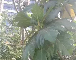 面包树 Fosberg)是桑科波罗蜜属植物。叶大,成熟之叶羽状分裂,表面深绿色,…