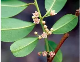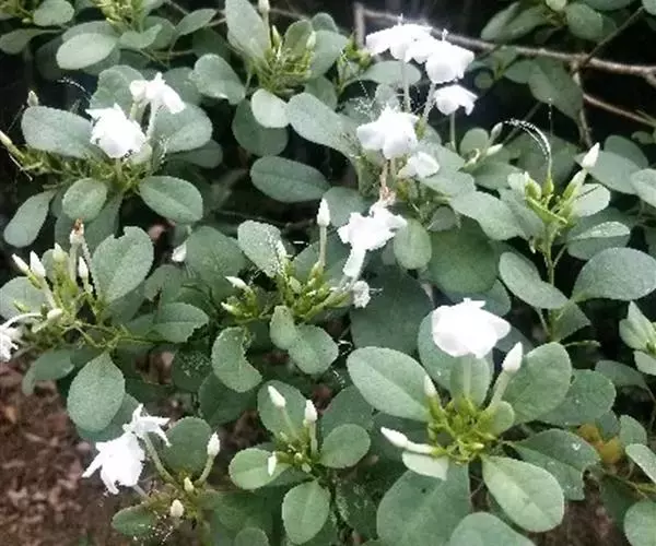 灌木,高1-4米,无毛,叶有短柄,叶片纸质,倒卵状椭圆形或椭圆形,长2.2-6.8厘米,宽2-3.4厘米,顶端圆形,基部宽楔形,全缘,脉稍隆起或近平,脉网不明显;叶柄长0.7-1.6厘米。聚伞花序在茎和分枝上部腋生,长达4厘米;苞片小,宽卵形;花有短梗,有香味;萼片5,披针形,长6 -8毫米,果期宿存;花瓣5,白色,瓣片圆倒卵形或倒卵形,宽0.6-1.5厘米,爪细,长2.5-3厘米;雄蕊5 ,比花瓣爪稍长,花丝筒长约5毫米,退化雄蕊5;子房4室,花柱4,与雄蕊近等长,柱头球形。蒴果卵形,长1.1-1.5厘米,室间开裂成4 瓣;种子与果近等长,顶部翅狭长。 分布于云南东南部、广西西部和北部、贵州南部。生海拔160-1600米间石灰山的灌丛中。 图注:1.花枝,2.雄蕊,3.蒴果。