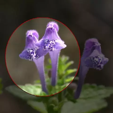 总状花序顶生或腋生,顶生的有7-14花,长11-14.5厘米;轴被反曲的短毛;下部苞片叶状,上部苞片线形;花梗长2-5.5厘米,密被伸展的柔毛;小苞片生花梗上部或中部附近,线形,长5-10毫米,宽0.5-1毫米;萼片蓝色,外面疏被短柔毛,上萼片高盔形或盔形,高1.5-2厘米,下缘稍凹自基部至喙长1.1-1.5厘米;花瓣无毛,瓣片长约10毫米,宽约3.5厘米,唇长约6毫米,距长约1.5毫米,向后弯曲;雄蕊无毛,花丝大多全缘;心皮5,子房上部疏生短毛或无毛。