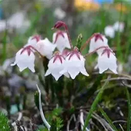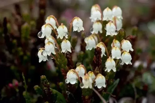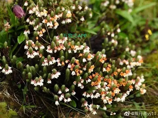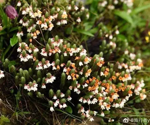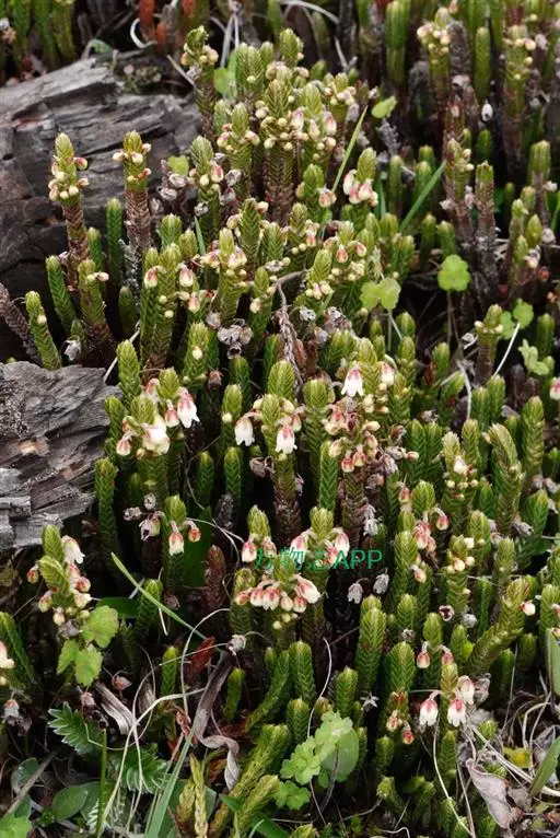 岩须(学名:Cassiope selaginoides Hook. f. et Thoms.)常绿矮小半灌木,高5-25厘米;枝条多而密,外倾上升或铺散成垫状,密生交互对生的叶。叶硬革质,披针形至披针状长圆形。花单朵腋生;花萼5,绿色或紫红色,裂片卵状披针形或披针形;花冠乳白色,宽钟状。蒴果球形,花柱宿存。花期4-5月,果期6-7月。产四川西部、云南西北部、西藏东南部。生于海拔2000-4500米的灌丛中或垫状灌丛草地。该种全草可入药。