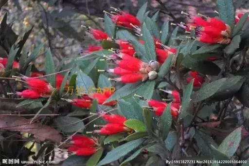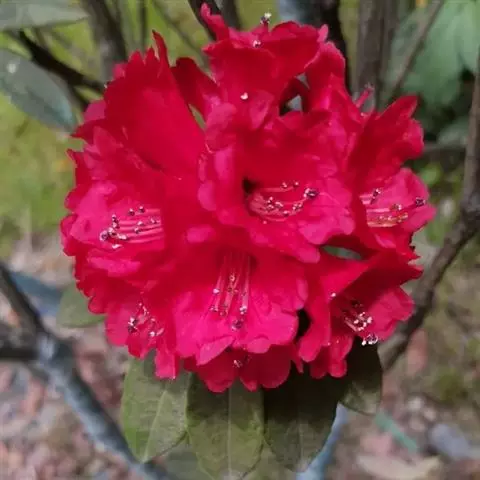 爆杖花(学名:Rhododendron spinuliferum Franch.):灌木,高0.5-3.5米。幼枝被灰色短柔毛,杂生长刚毛,老枝褐红色,近无毛。叶坚纸质,散生,叶片倒卵形、椭圆形、椭圆状披针形或披针形,。花序腋生枝顶成假顶生;花冠筒状,两端略狭缩,长1.5-2.5厘米,朱红色、鲜红色或橙红色,上部5裂,裂片卵形,直立。蒴果长圆形,长1-1.4厘米,被疏茸毛并可见鳞片。花期2-6月。