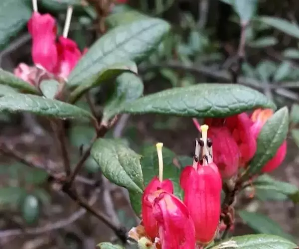 溪畔杜鹃:常绿灌木,高可达3米;幼枝纤细,叶纸质,上面深绿色,下面淡黄褐色,叶脉在上面凹陷,下面凸…