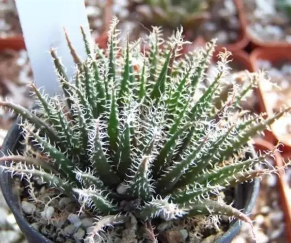 琉璃姬孔雀(学名:Aloe haworthioides Baker)又名羽生锦,是阿福花科芦荟属的多年生植物,多肉植物。分布于非洲的马达加斯加。肉质叶密集丛生,呈莲座状排列。叶片剑形,长约4厘米,深绿色,叶缘及叶表均有群生的白色毛刺。
