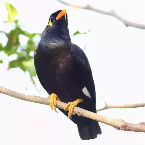 黑冠椋鸟:中等体型的椋鸟,体长21厘米。雄鸟前头为黑色并具金属光泽;头顶、颈项和羽冠亦为黑色;翅及翅上覆羽黑色;尾羽褐色,具白色端斑;上体灰色;下体淡黄褐色。雌鸟形态与雄鸟相似,但羽冠较雄鸟为短。虹膜蓝白或乳黄色;嘴峰铅绿色;跗蹠及爪柠檬黄色。头具黑色羽冠,与其他椋鸟易于区别。主要栖息于开阔落叶阔叶林和灌木林中以及多营巢于树洞中或其他洞穴内。属群鸟共栖。常4-8只结小群活动。鸣声清脆响亮。食物有果实和浆果,偶食花蜜和小型昆虫。分布于印度、中国云南耿马。常见于印度城镇、村庄及铁路沿线。偶见于中国云南西南部和西藏东南部。
