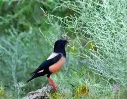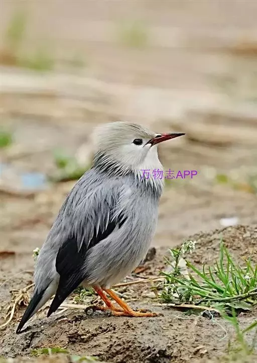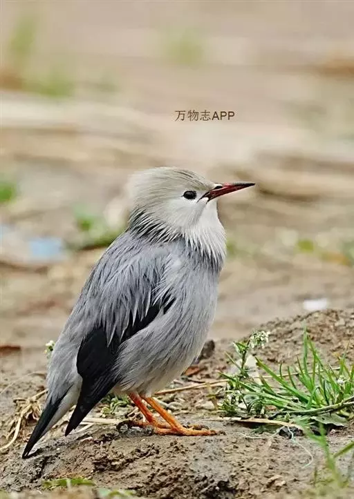 丝光椋鸟(学名:Sturnus sericeus):体型大小和其他椋鸟相似,体长20-23厘米。嘴朱红色,脚橙黄色。雄鸟头、颈丝光白色或棕白色,背深灰色,胸灰色,往后均变淡,两翅和尾黑色。雌鸟头顶前部棕白色,后部暗灰色,上体灰褐色,下体浅灰褐色,其他同雄鸟。特征均甚明显,野外不难识别。